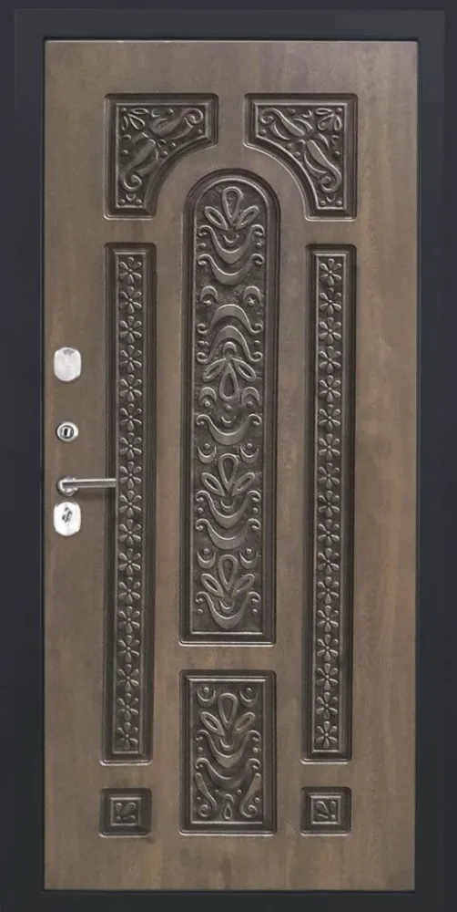 Дверь ДвериПРО Модель L-49 Д-19 (16мм, Грецкий орех + черная патина винорит) DPRO195592